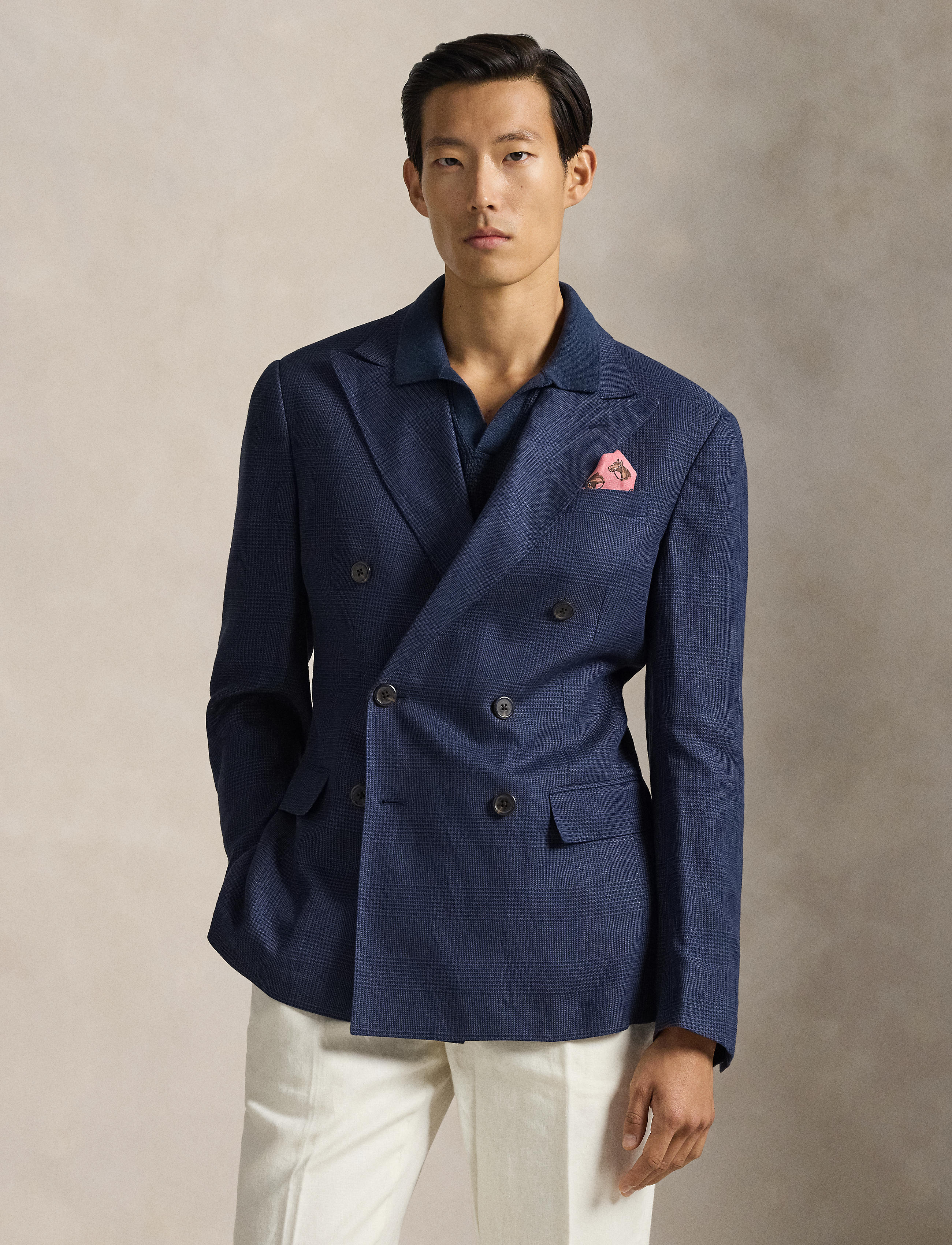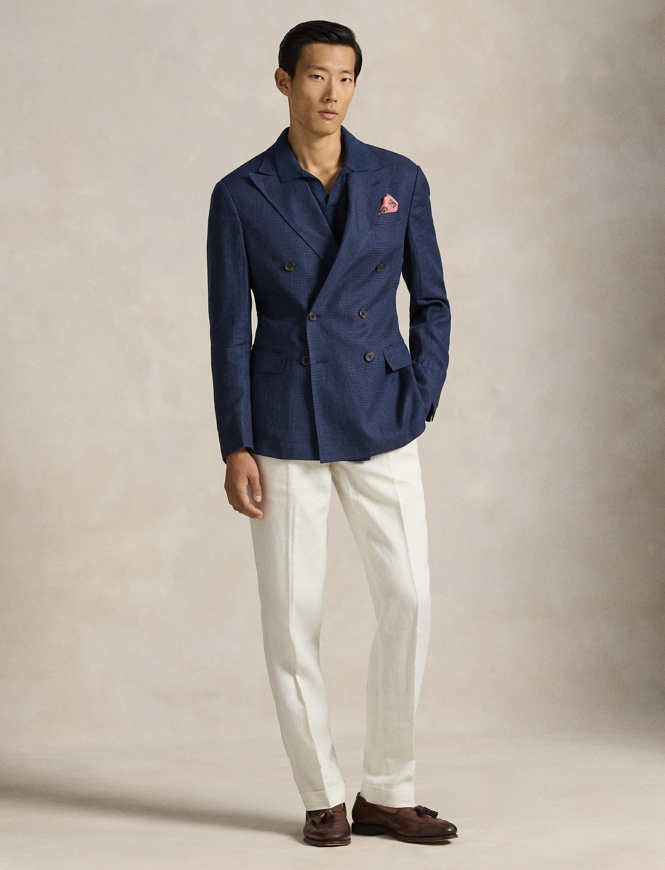 Our Polo jacket offers more structure in the chest and shoulders. This version is expertly tailored using a custom-developed linen-blend twill that includes a touch of wool for lightweight ... Sjá nánar