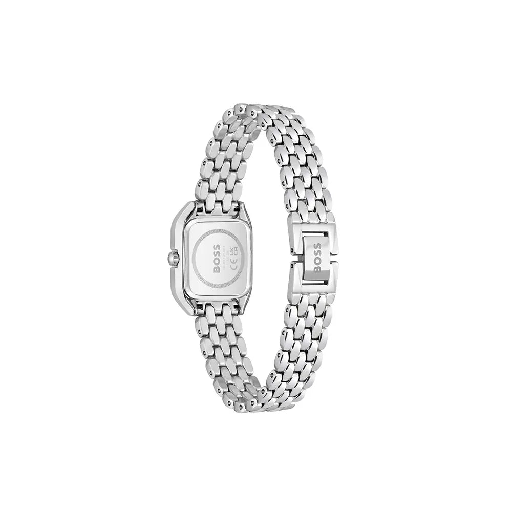 Hugo Boss Mae Petite Vörunr:1502821 Fallegt dömuúr frá Hugo Boss. Gangverk:Rafhlaða/Quartz Stærð:22mm Úrkassi:Gyllt og Stál Keðja/ól:Stál Skífa:Silfurlit Gler:Hert gler Vatnsvörn:30m ... Sjá nánar