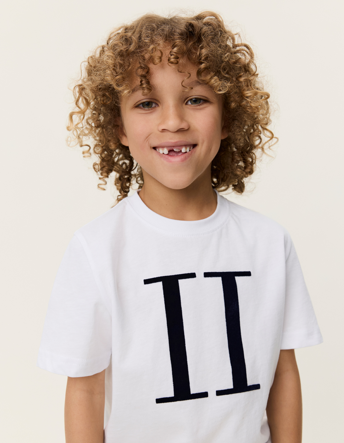 Hvítur stuttermabolur frá Les Deux með svörtu, stóru logo að framan. 100% bómull.