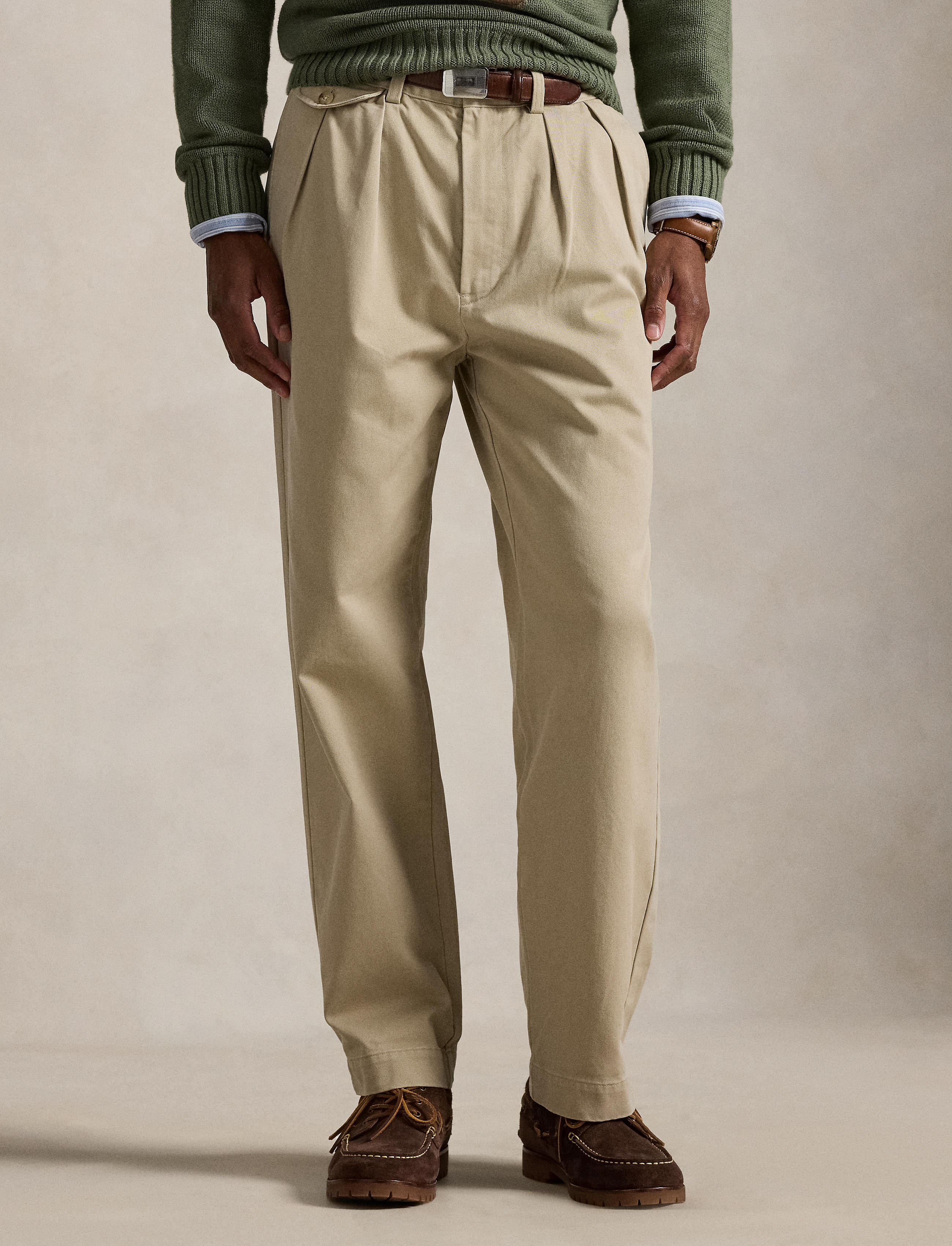 In soft cotton chino, these unisex pants offer a classic Polo look with their relaxed, pleated silhouette. The fit of this unisex style is based on our standard men's sizing. We suggest ... Sjá nánar
