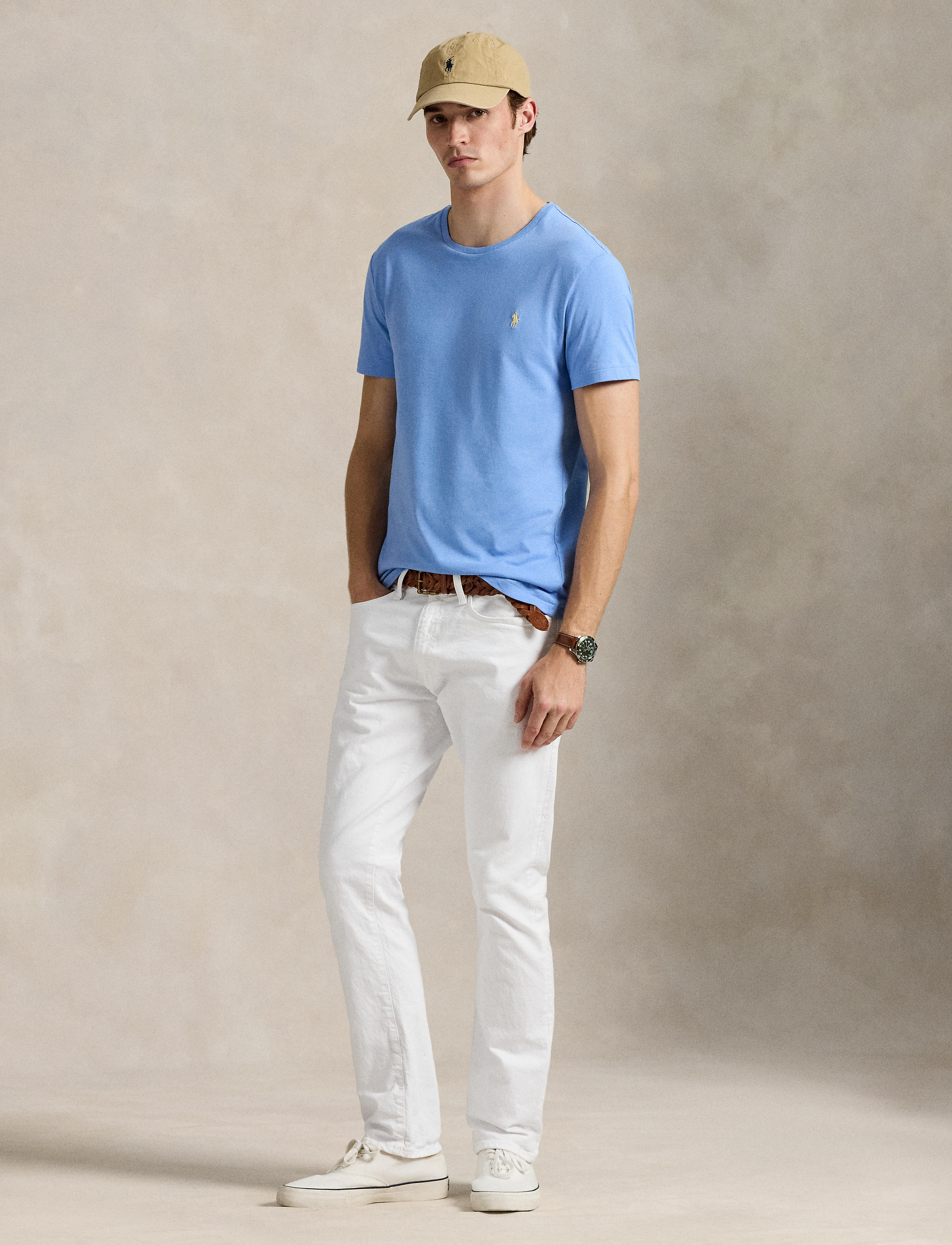 Washed for a perfectly broken-in look and feel, this cotton T-shirt is a Polo essential you’ll reach for again and again. Custom Slim Fit: Slightly fitted through the chest and the waist. Size ... Sjá nánar
