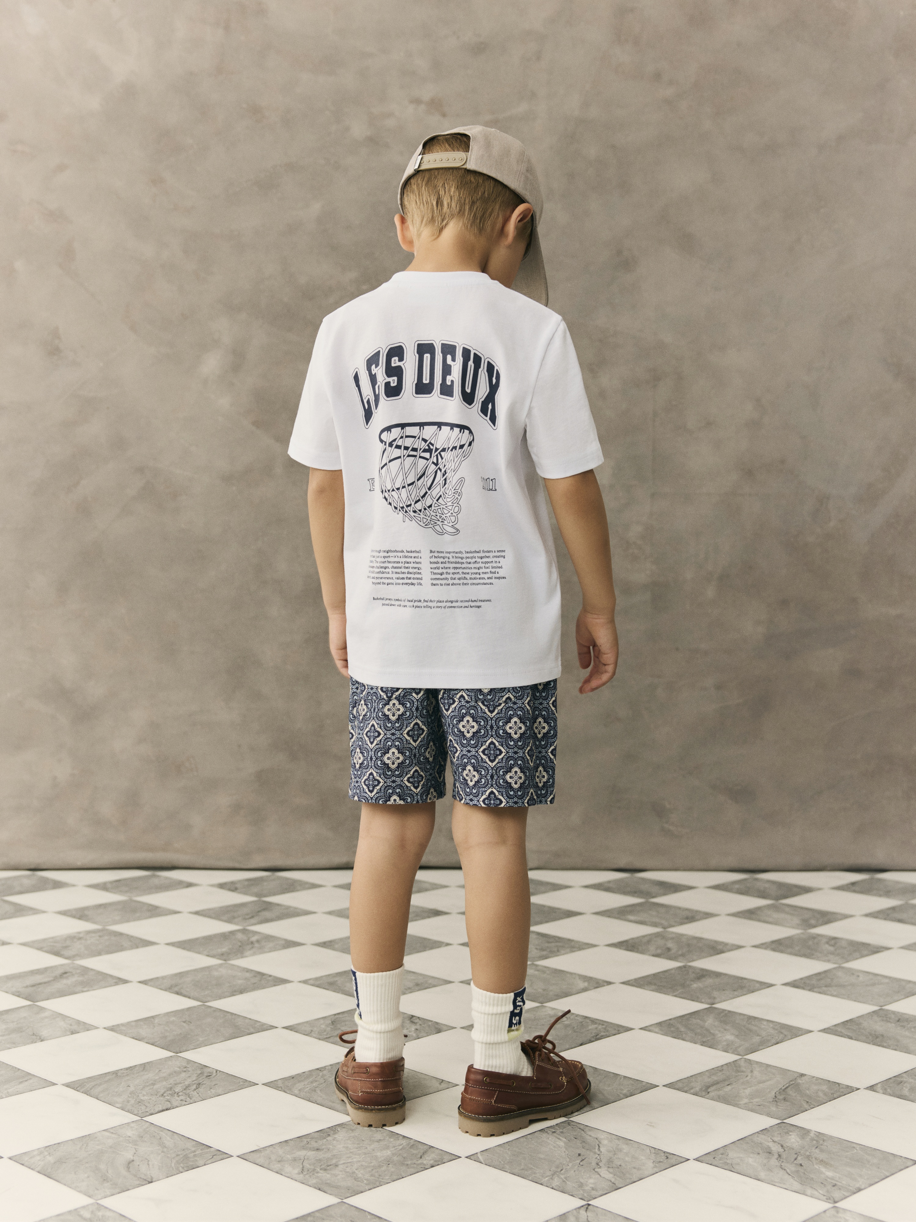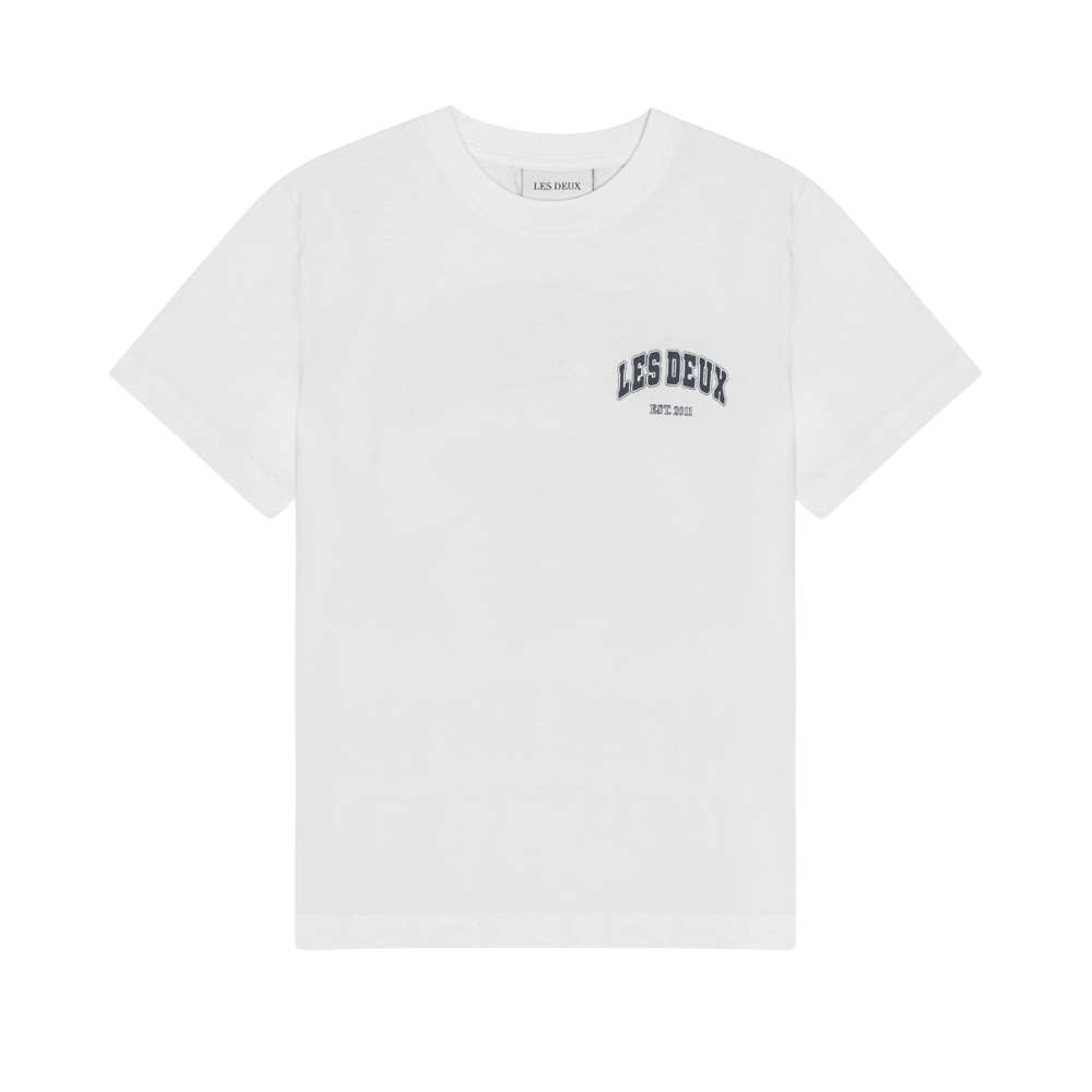 Hvítur stuttermabolur frá Les Deux með svörtu logo að framan og stórri mynd að aftan. 100% bómull.