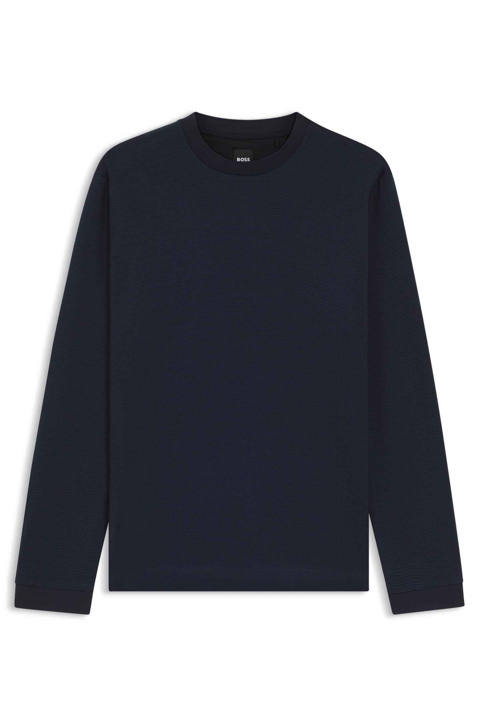 With its subtle pattern and long sleeves, this BOSS Menswear T-shirt will work for a variety of looks. Cut to a casual regular fit. Regular fit Neckline: Crew neck Long sleeves 100% Cotton The ... Sjá nánar